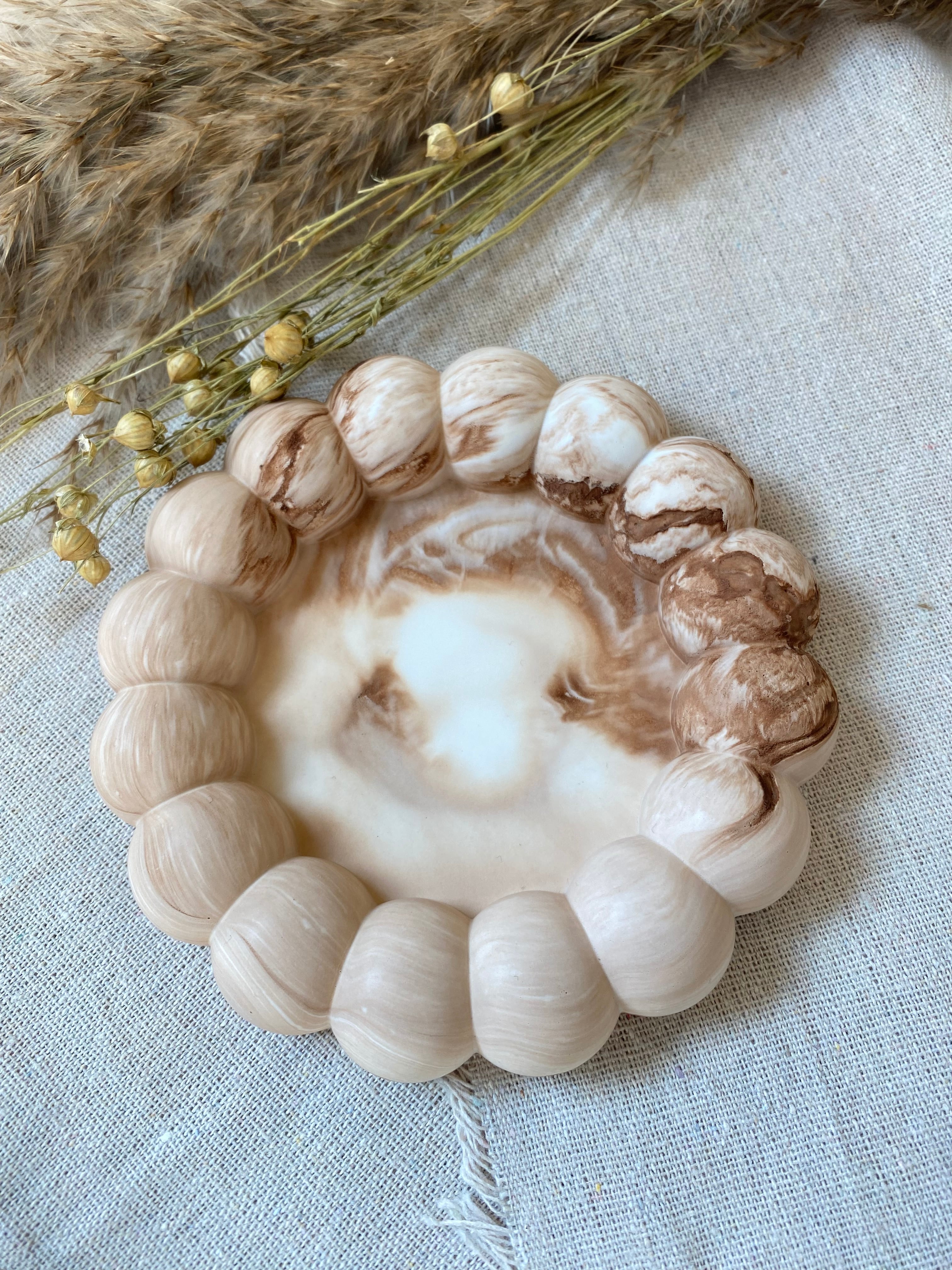 まるでCafe latteのように、淡く柔らかに混ざり合う模様が特徴のトレイで、アクセサリーやコスメ、小物類を置くのに丁度いいサイズ感です。