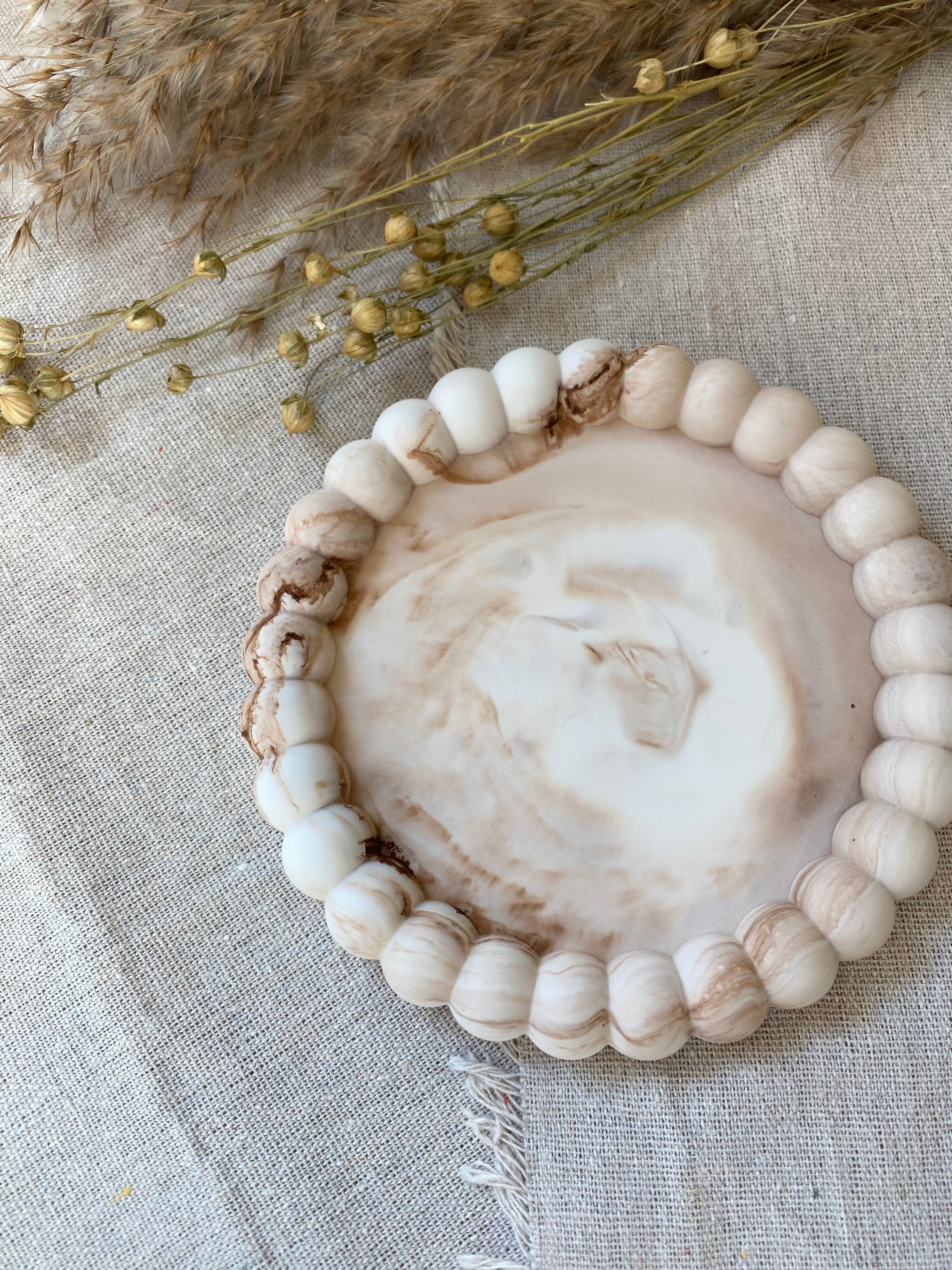 まるでCafe latteのように、淡く柔らかに混ざり合う模様が特徴のトレイで、アクセサリーやコスメ、キャンドルなど、小物類を置くのに丁度いいサイズ感です。
