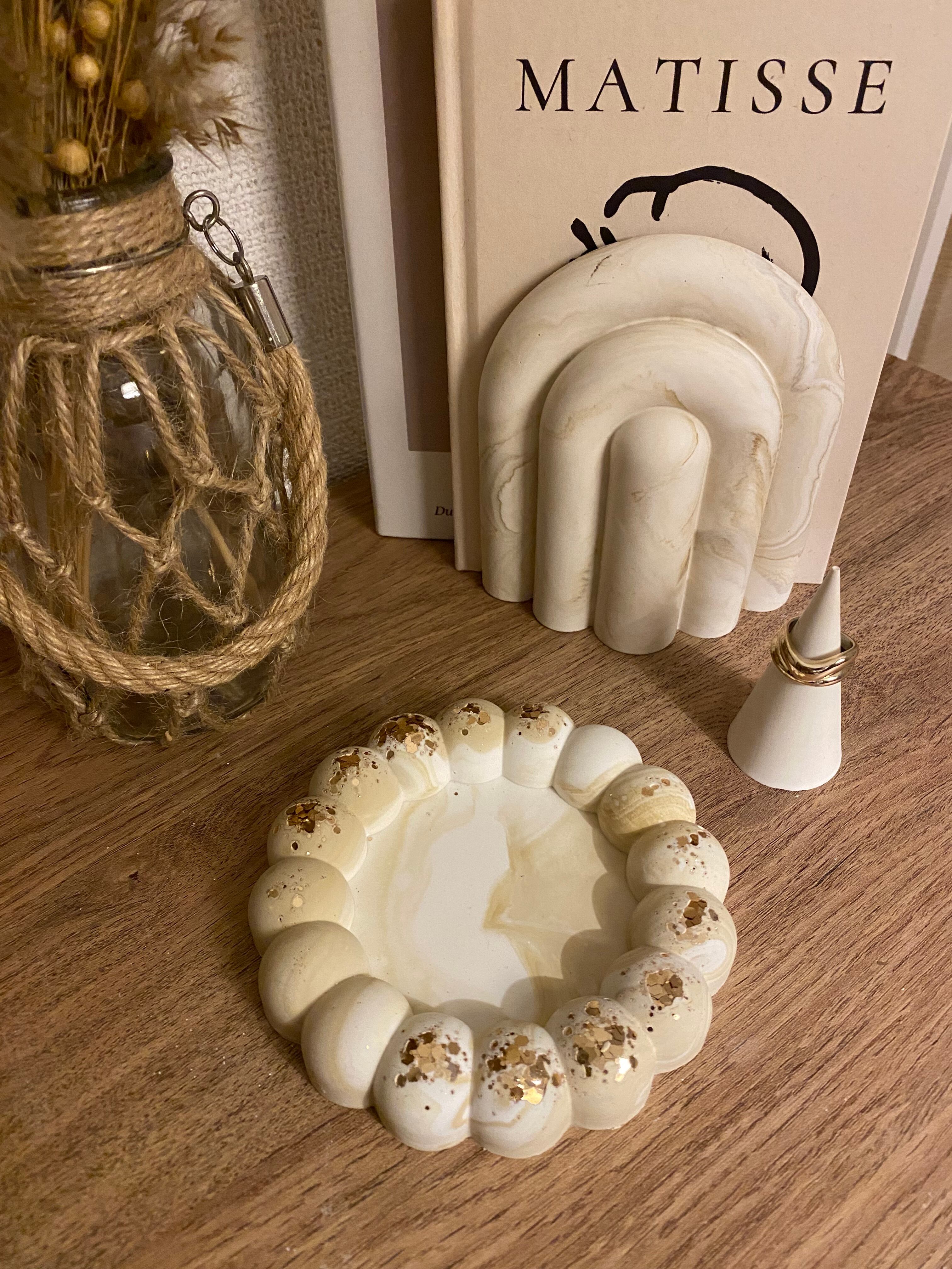 キラキラのグリッターを散りばめたマーブルカラーのトレイです。